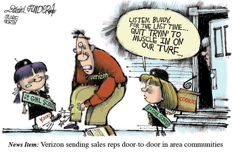 Newspaper cartoon for The Boston Globe's North suburban section on door-to-door sales.